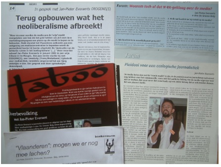 JP: Dat is te wijten aan de breuk met De Morgen in 2001 en ook eentje met De Standaard, die een petitietekst tegen de oorlog in Irak (2003) waar ik de handtekeningen van een 40-tal mediamensen voor verzameld had, niet wou opnemen. Zoals de Franse socioloog Pierre Bourdieu, heb ik ook geen zin meer om in de commerciële kranten het toneeltje te helpen opvoeren dat ze pluralistisch zouden zijn. Bovendien: als je de media wil bekritiseren, kan je er niet tegelijk zoete broodjes mee bakken.