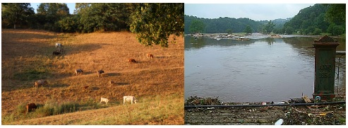 Links: de droogte van 2018 gaf niet alleen de boeren maar zowat alle Belgen een voorsmaakje van wat ons te wachten staat als de klimaatopwarming doorzet. (Foto Patrick Everaerts, Limbourg) Rechts: Drie jaar later volgde de overstromingsramp in de Vesdervallei (Foto jpe, Dolhain) Voor uitgebreid verslag: zie https://www.waalsweekblad.be/watersnood.htm